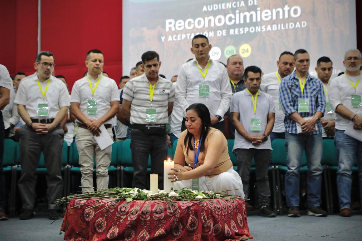 Esta fue la quinta Audiencia de Reconocimiento del caso 03 y la de mayor número de participantes realizada hasta ahora, tanto víctimas como comparecientes. Al inicio de la audiencia, familiares de las víctimas rindieron homenaje a sus seres queridos y pidieron la verdad a los exmilitares que participaron en la diligencia judicial.
