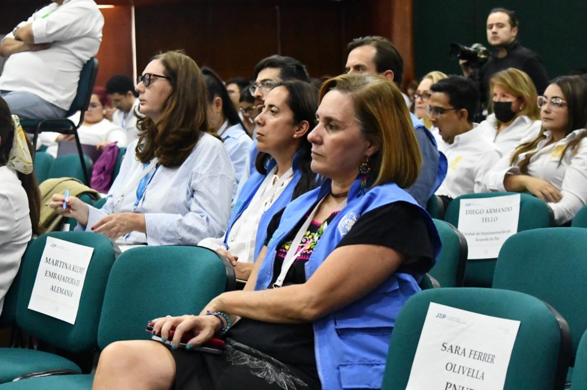 La Misión de Verificación de las Naciones Unidas en Colombia acompañó la Audiencia con personal del nivel nacional, regional y local. “Acompañamos a las víctimas y a sus familias, porque la contribución a la verdad y el compromiso con ellas son fundamentales para que el proceso de justicia restaurativa tenga éxito”, señaló Angela Bargellini, Jefa de la Oficina Política de la Misión, y recordó el llamado del Secretario General en su más reciente informe sobre Colombia: “Insto a los integrantes de todas las partes en conflicto a que cumplan su obligación de contribuir a la verdad y reconocer su responsabilidad por los crímenes cometidos durante el conflicto”.