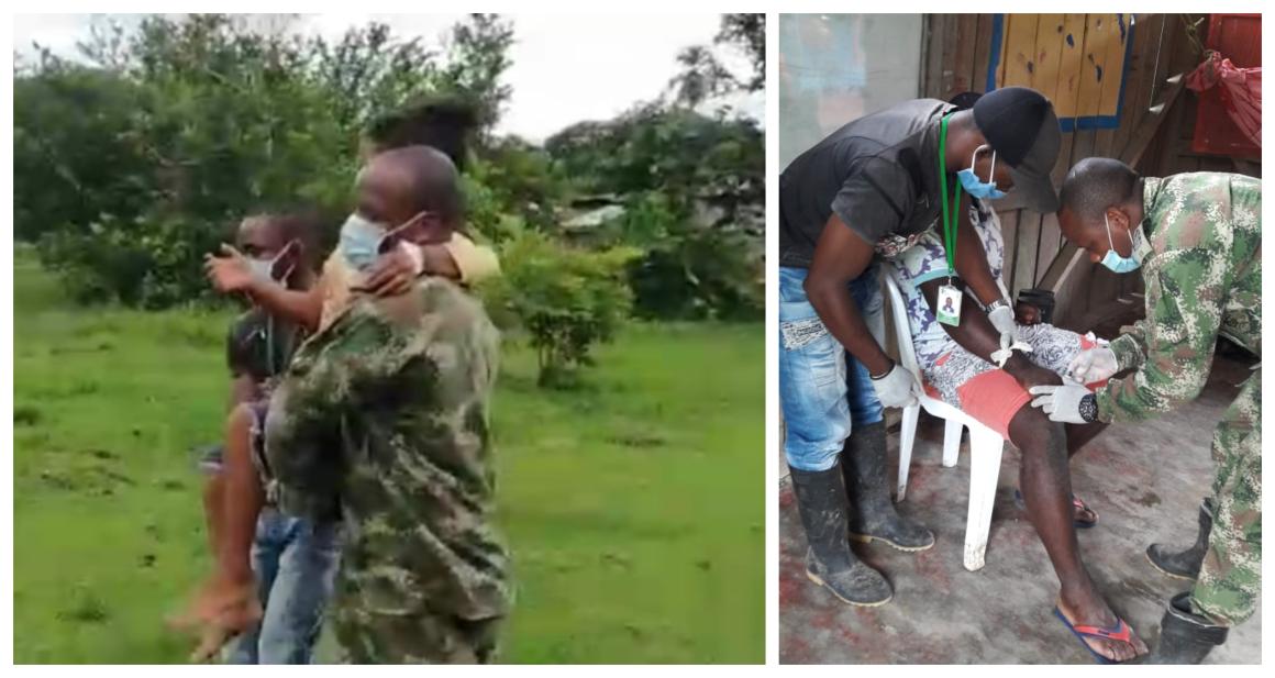 –Cuando estábamos en Dabeiba haciendo el curso de Promotores Rurales de Salud teníamos organizado un tipo de reunión que se llamaba Carpa Azul, que eso lo hacíamos cada 8 días, nos reuníamos todas las partes, Ejército, Policía, excombatientes y comunidad. Aquí nos apoyamos para brindar esta ayuda a la comunidad. Nos han ayudado con evacuación de enfermos, enfermería, medicamentos…