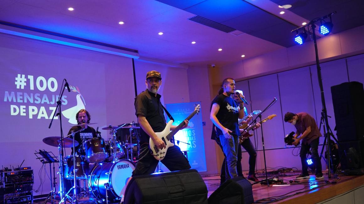 ¿Por qué la música en sí misma puede ser un mensaje de Paz? Ekhymosis una banda formada en Medellín hace 30 años por Juan Esteban Aristizábal -Juanes- y Andy García, cerró la jornada con un repertorio de canciones alusivas a la paz, la reconciliación y la esperanza que fueron interpretadas en homenaje a las víctimas del conflicto.