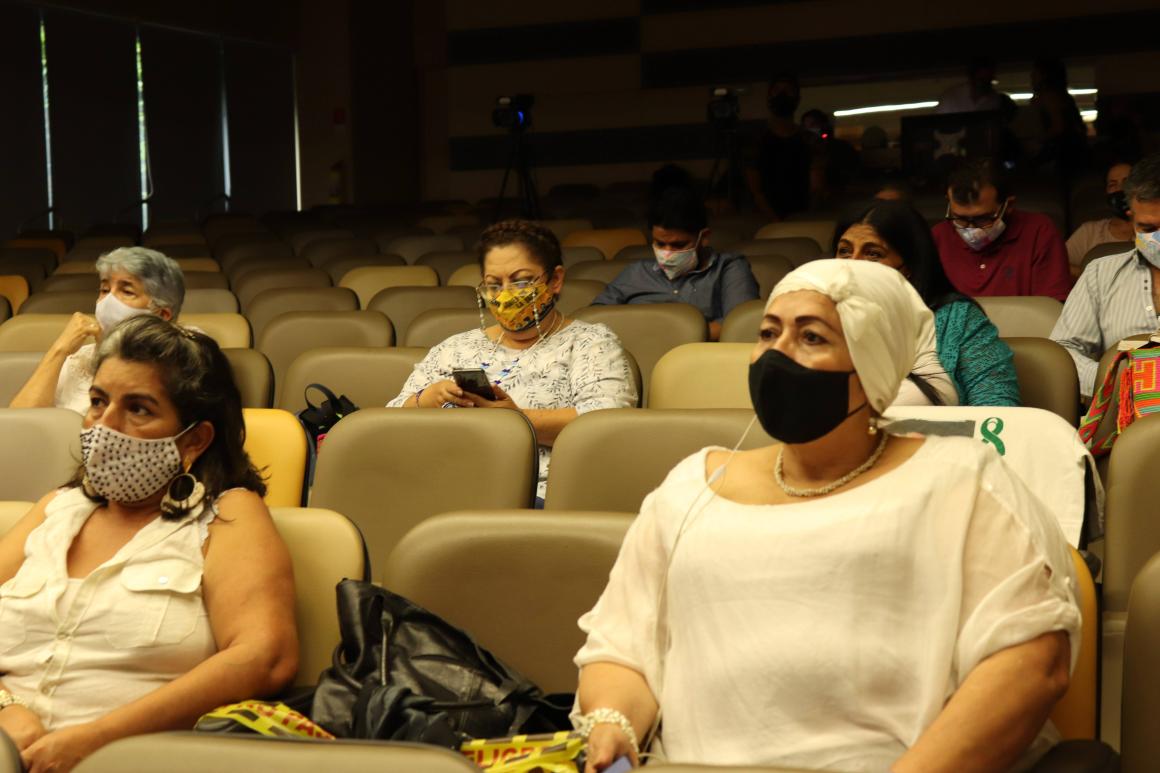Cinco mujeres en representación de las distintas líneas de las Madres de la Candelaria, quienes cumplen más de dos décadas de trabajo por la memoria y la búsqueda de sus seres queridos. Su trabajo ha sido incansable, permanente y enfocado en brindarle apoyo a las madres y mujeres de los cientos de desaparecidos en el país. Y otras cinco mujeres que dejaron atrás las armas y hoy avanzan en su proceso de reincorporación en Medellín y son excombatientes de Farc y con su trabajo quieren construir paz y dar testimonio de ello, asistieron al evento como testimonio de memoria y reconciliación.