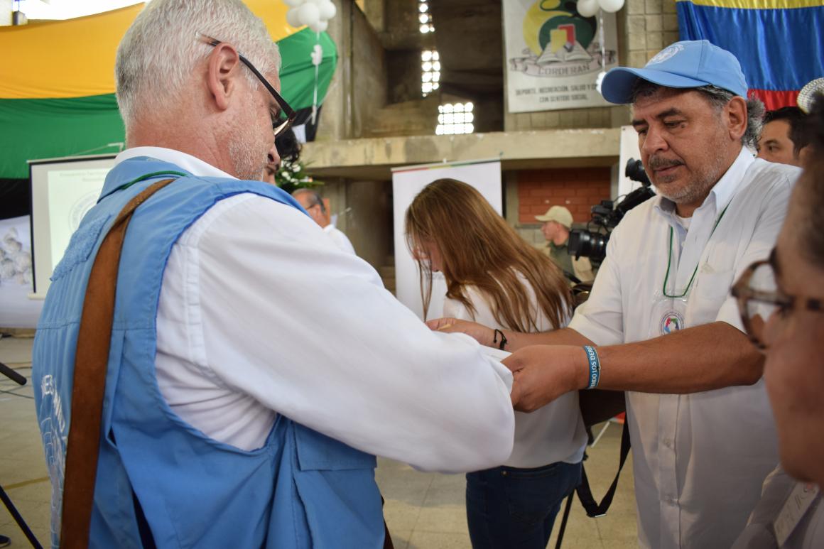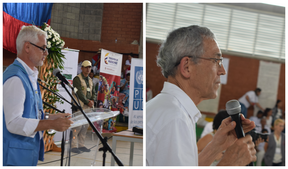 “Todos nosotros que tenemos el privilegio estar aquí en este evento el día de hoy, lo vamos a recordar para siempre. El día de hoy, los colombianos reunidos en este coliseo están dando un ejemplo al país entero del camino a seguir hacia un futuro mejor, reconciliado con un pasado doloroso. Las Naciones Unidas valora enormemente este ejercicio de reconciliación entre las víctimas y los ex combatientes de Farc y de las Autodefensas Unidas de Colombia, y por ello la comunidad internacional está decidida en acompañar iniciativas como estas en articulación con el Gobierno Nacional y el gobierno departamental y local”, añadió Richard Clarke, jefe adjunto de la oficina regional de Medellín de la Misión de Verificación de la ONU en Colombia.