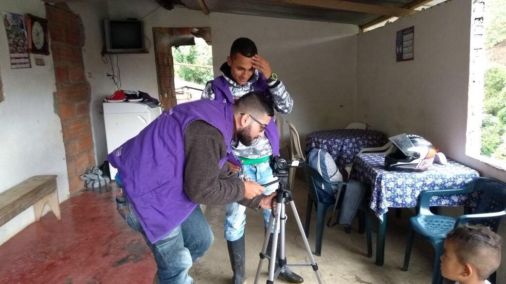 Esteban trabaja con niños y adultos en la construcción de estos materiales, al tiempo que intenta generar espacios de encuentro en torno a la reconciliación. “Todos los días me reto sobre cómo voy a hacer para engancharlos, para impactarlos de manera positiva. Son más de 100 niños en esta vereda a la espera de cultura y conocimiento”, comenta.