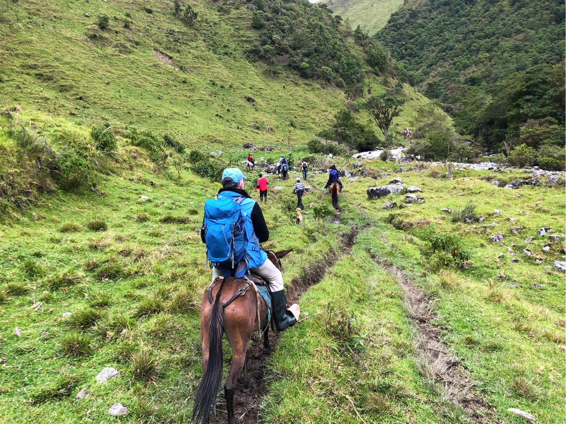 A pie y a caballo, las cerca de 40 personas que participaron en la actividad se adentraron las montañas del Cañón de las Hermosas, zona que fue escenario de combates entre las extintas FARC-EP y las fuerzas militares colombianas. Foto por: Héctor Latorre/UNVMC