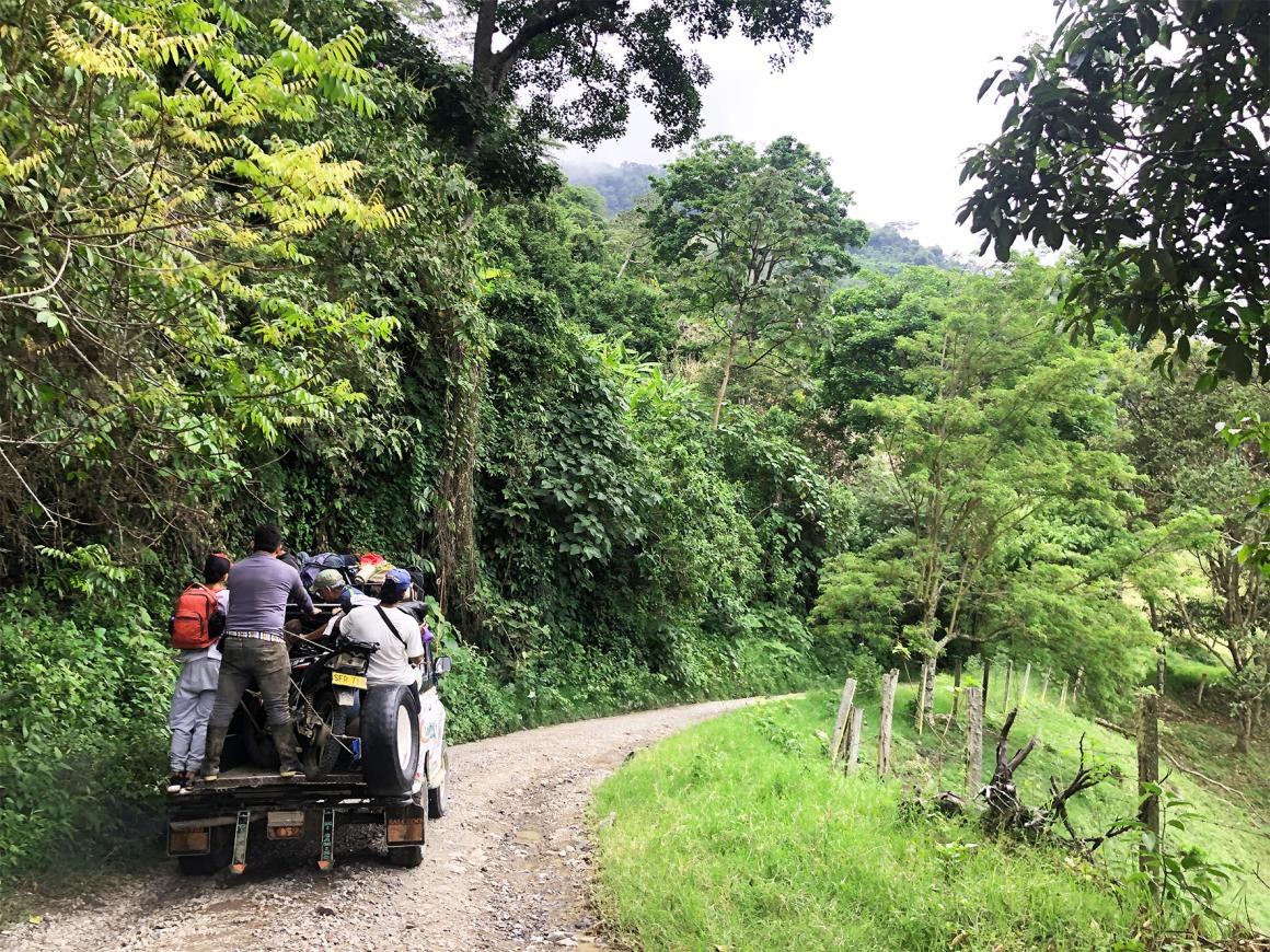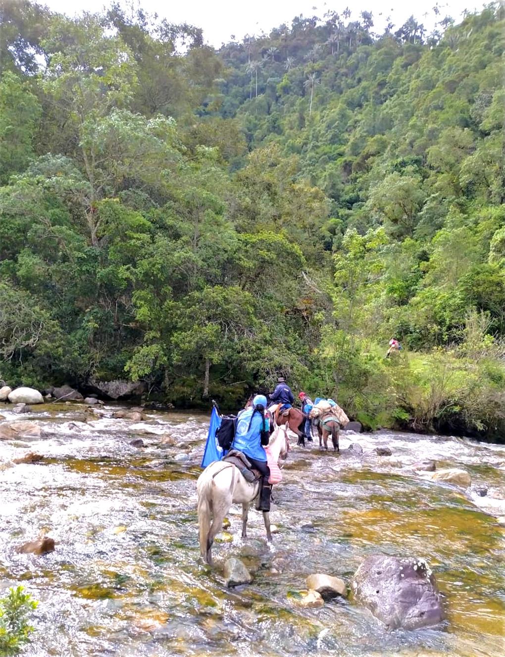 Durante el recorrido que partió de la población de San José de las hermosas, en zona rural de Chaparral, Tolima, el grupo recorrió varios kilómetros remontando el río Amoyá. Foto por: Christian Degasperi/UNVMC