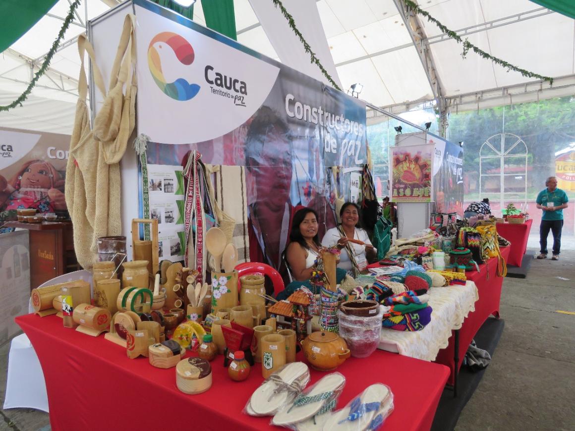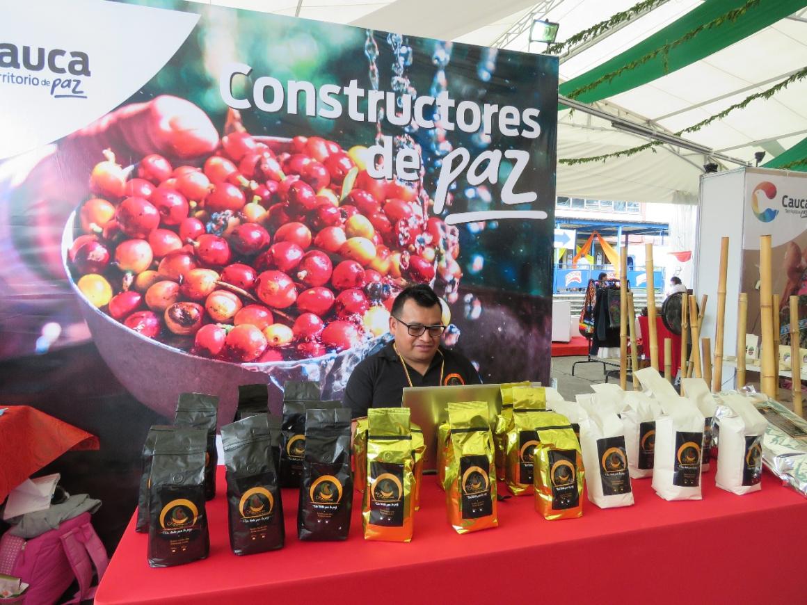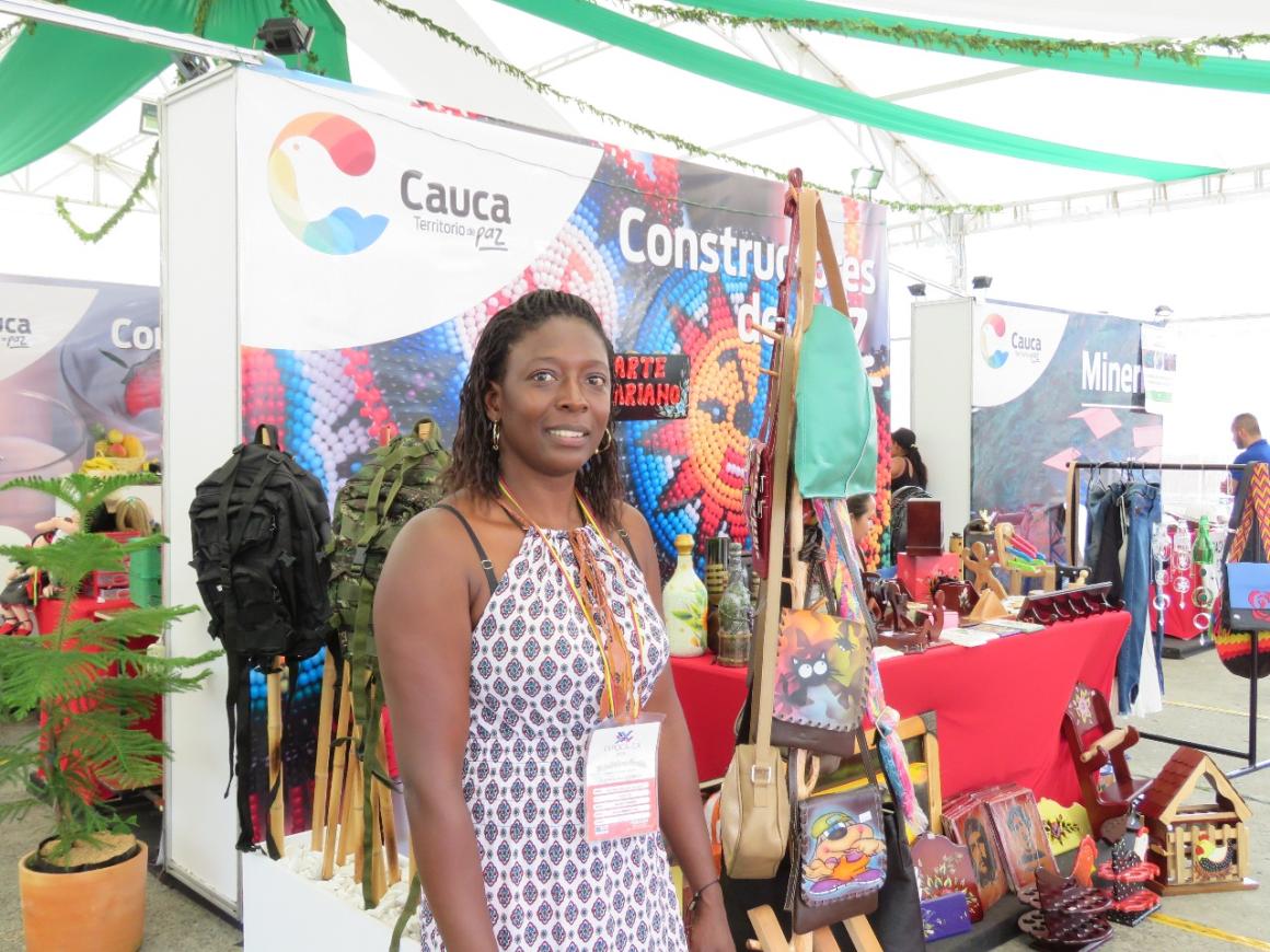 En ExpoCauca 2019 se realizó la presentación en sociedad de la primera tienda dedicada a la comercialización de productos de excombatientes en Popayán. Por esta razón, Celeny, la encargada de la atención del stand, ubicado en el pabellón “Cauca: Constructores de Paz”, irradiaba una enorme sonrisa ante los asistentes.