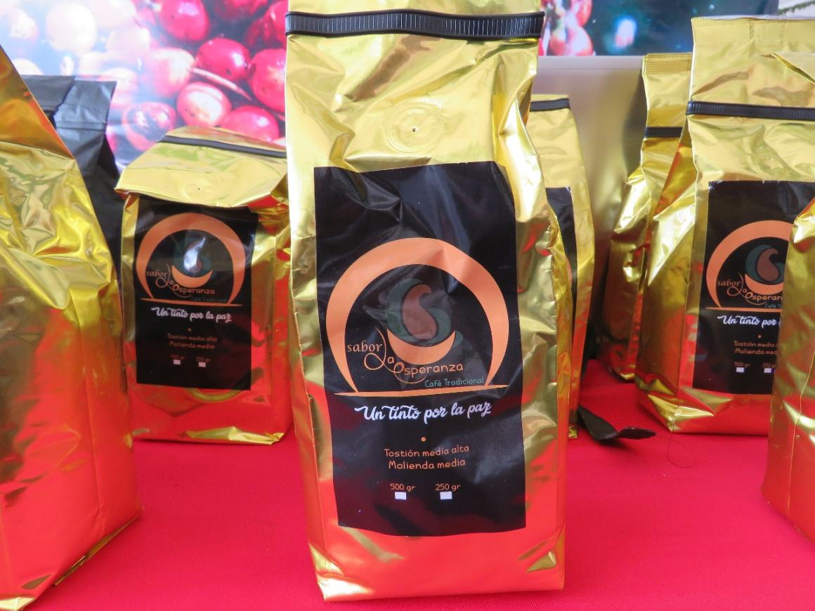La exposición de iniciativas realizadas por las diversas cooperativas de exguerrilleros en el suroccidente colombiano no estaría completa sin uno de sus productos emblema “Café Sabor la Esperanza”. Un producto realizado en el Espacio Territorial de Capacitación y Reincorporación de La Elvira, en Buenos Aires (Cauca).