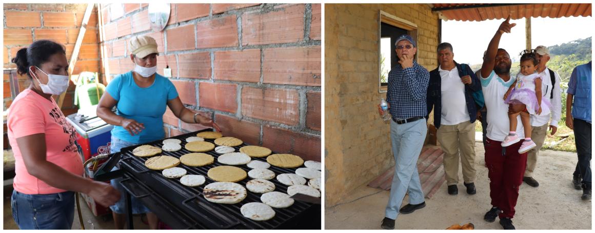 Posteriormente, la delegación visitó una fábrica de arepas, emprendimiento que adelantan las mujeres de Llano Grande con acompañamiento de FAO; recorrió la Institución Educativa, una sastrería, un restaurante comunitario, una panadería y la casa modelo de un proyecto de turismo.
