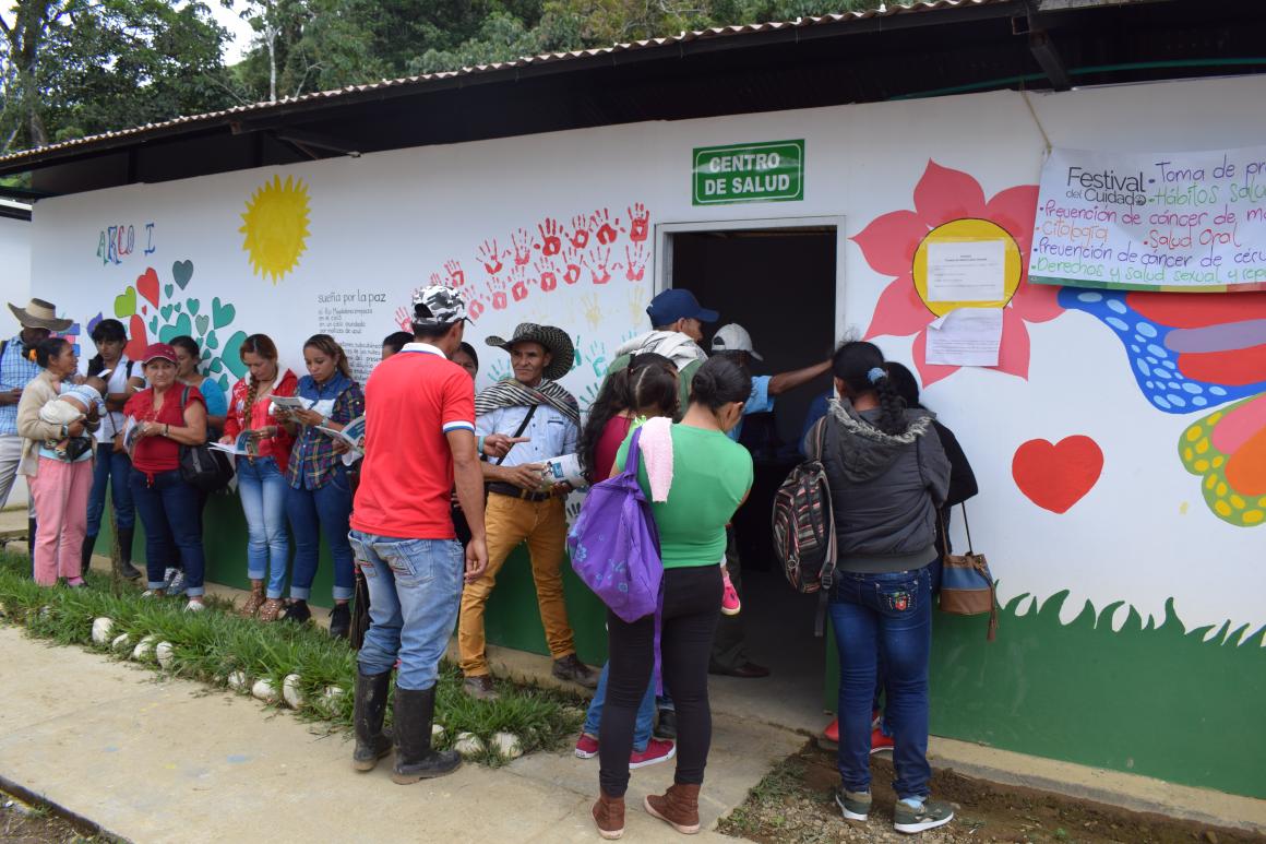 Una chiva llegó con gente de veredas más lejanas. Muchas personas llegaron a pie y en mula. A las 10 de la mañana inició formalmente la jornada con una oferta que incluía el aseguramiento y el cuidado de la salud (toma de presión arterial, peso, talla); salud alimentaria y nutricional; sexualidad (planificación, servicios amigables); prevención de cáncer de mama y cérvix (educación y agendas para citología); vacunación; salud ambiental (vacunación de caninos y felinos, educación en manejo de excretas, hábitos higiénicos y manipulación de alimentos, seguridad pública de las mujeres, formación en equidad de género; emprendimiento (muestras gastronómicas y artesanales de la comunidad) y recreación, entre otras. También se prestó asesoría sobre acceso a la justicia en las comunidades y en prevención y erradicación de violencia de género.