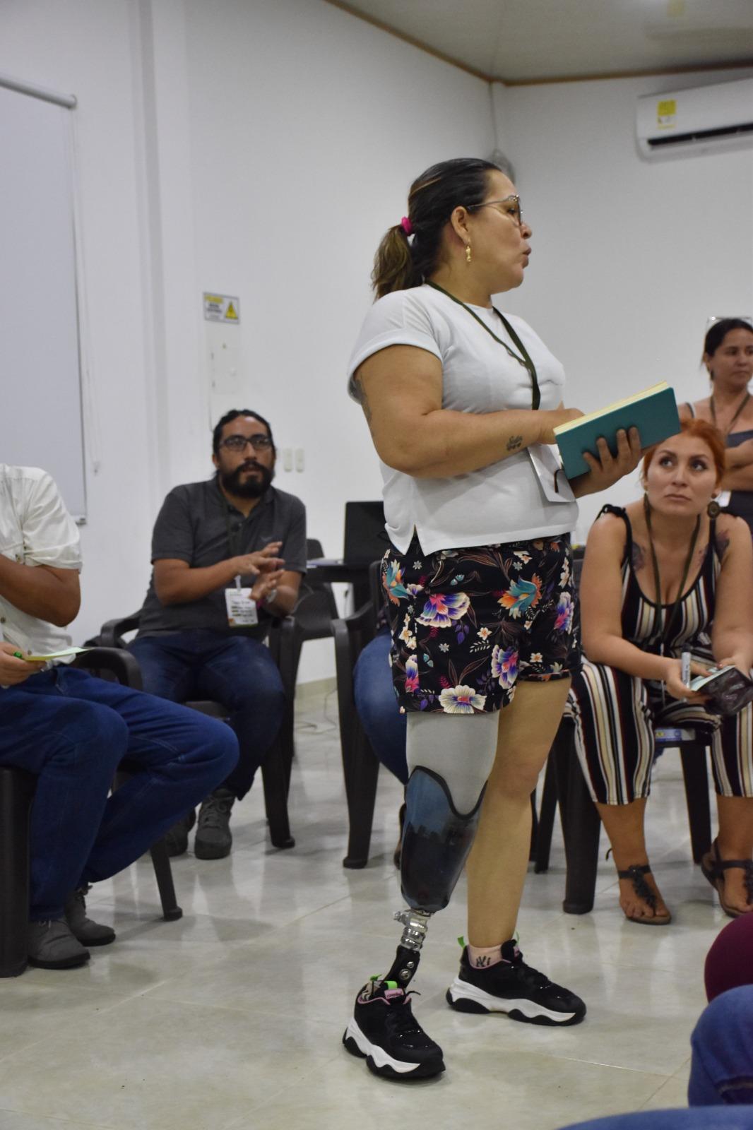 Gracias al Acuerdo de Paz, ese que me ha traído tantas oportunidades, como vincularme laboralmente, culminar mis estudios, disfrutar de mi hijo, tener apoyo sicosocial y tener un reconocimiento en la sociedad, soy una mujer segura que muestra con tranquilidad la falta de mi pierna. Antes me vestía con ropa larga, con pantalones anchos para que no se me notara la discapacidad física.