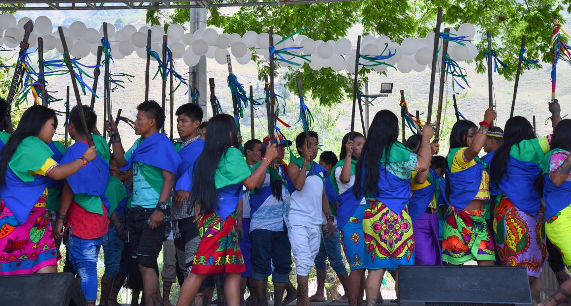 Posteriormente, los niños, niñas y adolescentes de la institución educativa de Llano Grande, donde se encuentra el antiguo ETCR en el que se realiza el proceso de reincorporación en esta región, participaron en un baile de esperanza junto con los indígenas, con ritmos urbanos, afros y tradicionales embera.