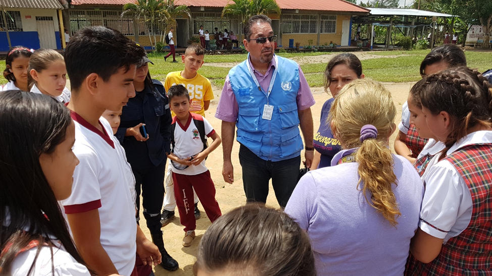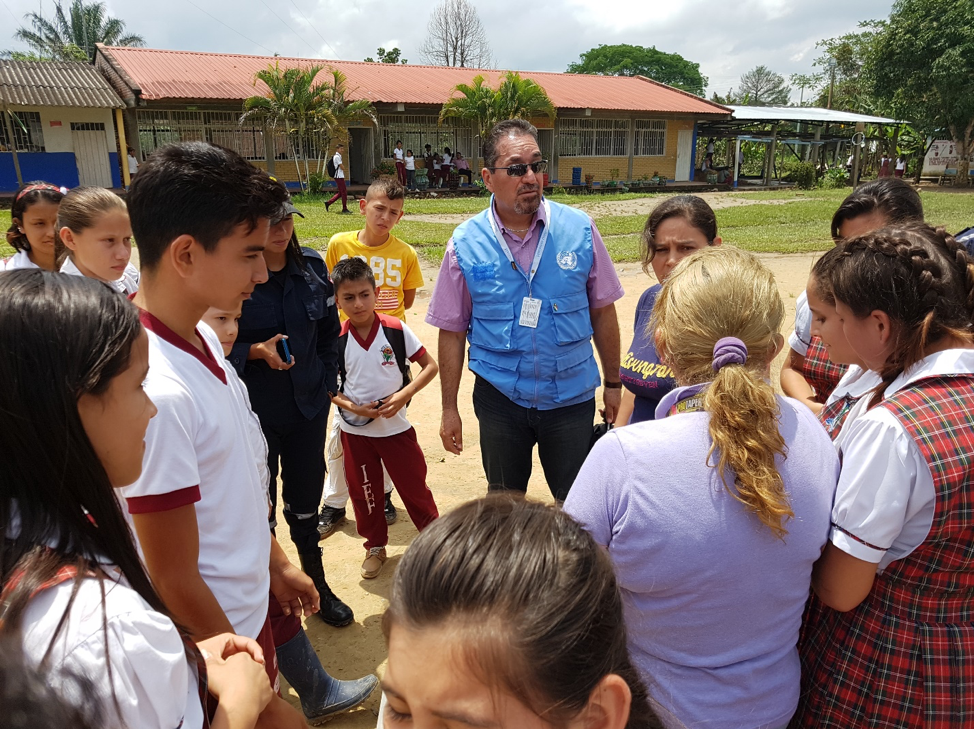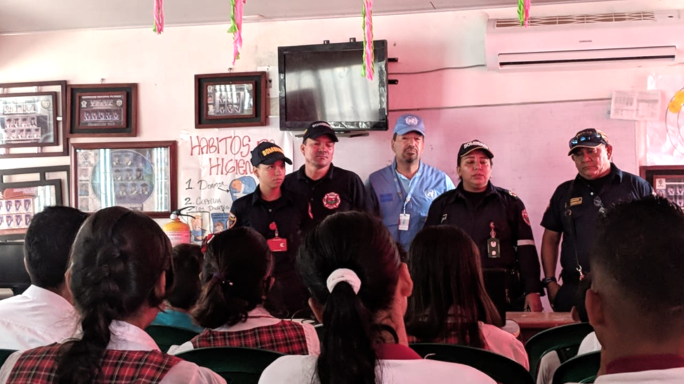 En el marco de las actividades de la Semana por la Paz, el equipo de la Misión de Verificación en Arauca ha realizado un taller de primeros auxilios básicos y prevención de incendios en la escuela de Filipinas, la única de esta vereda ubicada a dos kilómetros del ETCR Martín Villa donde conviven los excombatientes de Farc en proceso de reincorporación.