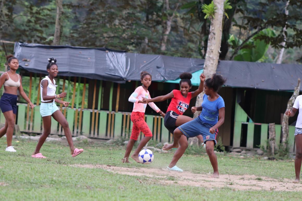 La joven relata que durante 2018 contaron en el apoyo de algunos líderes del Consejo Comunitario para tener una escuela de fútbol. Pero este año ha sido difícil porque no hay un entrenador o entrenadora que las apoye. “Los señores Abel y Conino nos ayudaban mucho el año pasado con la escuela de fútbol y aprendimos cosas nuevas. Pero ahora necesitamos ayuda”, añade.
