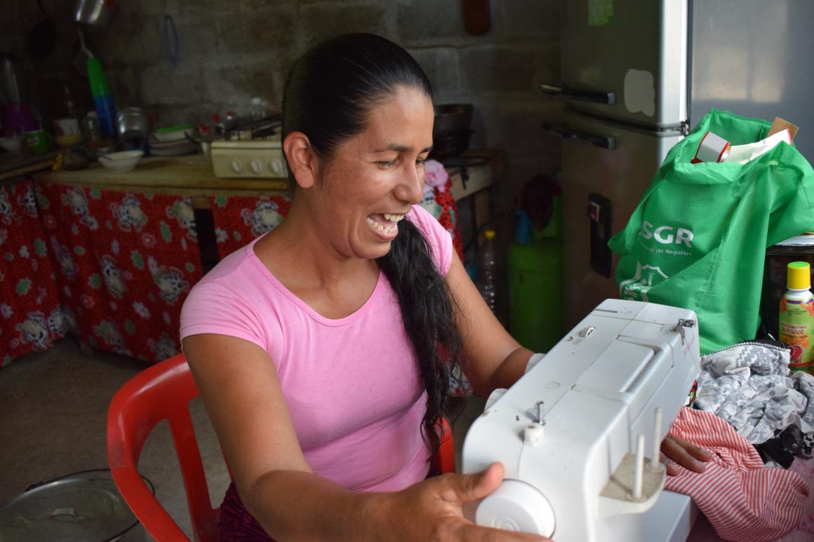 Es muy lindo aprender de lo que nos pasa en el Comité. Nos hemos integrado y hemos conocido gente nueva. Identificamos nuestras necesidades; acá principalmente lo difícil es la situación económica", dice Carmenza mientras cose uno de los vestidos que le han pedido de la vereda Tamar, ubicada a unos 30 minutos de su casa. Y finaliza expresando que el Comité de Mujeres le ha servido para relacionarse con las personas de su comunidad, que a pesar de estar al lado “era como si no nos conociéramos”.
