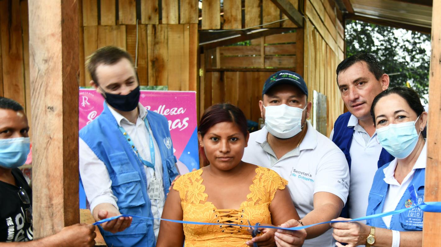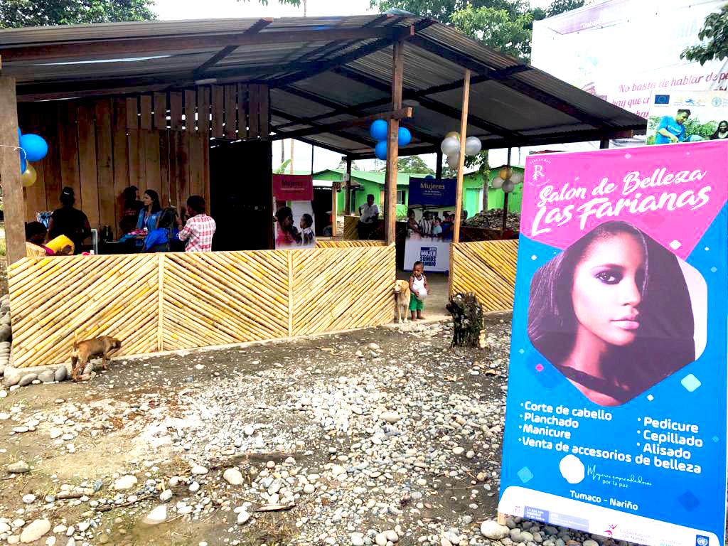 Empezaron participando en pequeñas ferias de artesanías en Tumaco y haciendo trabajos de manicura y estética a domicilio, mientras que a la vez recibían la asesoría y acompañamiento del equipo local de la Misión de la ONU en Tumaco y una consultora de ONU MUJERES que les brindaron herramientas e hicieron gestiones para visibilizar sus iniciativas productivas ante diferentes instancias, hasta que finalmente con el apoyo del Programa de las Naciones Unidas para el Desarrollo, la Agencia de Reincorporación y Normalización y la Gobernación de Nariño, recibieron el último empujón que necesitaban para hacer realidad su propósito: un apoyo económico para poner a funcionar un salón de estética, en donde además funciona su taller de artesanías.