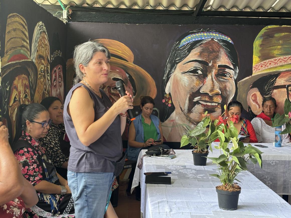 “El objetivo de este encuentro de mujeres constructoras de paz es fomentar el intercambio de conocimientos, experiencias y el desarrollo de capacidades en materia de mediación, prevención y resolución de conflictos desde un enfoque interseccional de género e indígena, reforzando las alianzas regionales en marco de la agenda de Mujeres, Paz y Seguridad”, explicó Devanna de la Puente, Asesora de Género de la Misión de Verificación de las Naciones Unidas en Colombia.
