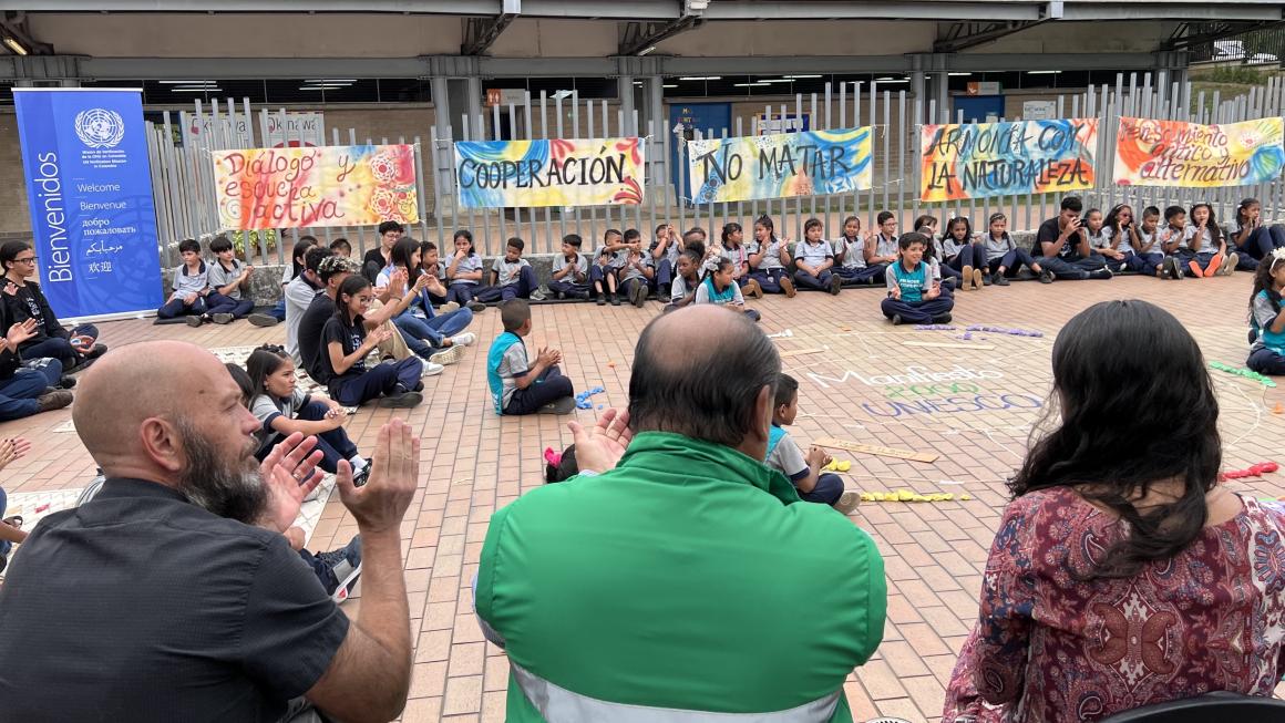 “Queremos enviar un mensaje de reconciliación y unirnos al llamado de las Naciones unidas en todo el mundo. Hoy celebramos que los niños, niñas y jóvenes de este colegio estén realizando acciones de reconciliación. Estén haciendo documentales y otras acciones sobre reconciliación, memoria y derechos humanos. Por eso estamos hoy aquí y la idea es seguir plantando estas semillas de paz en todo el territorio”, explicó, Enrique Sánchez Airas, Jefe de la Oficina Regional en Medellín de la Misión de Verificación de la ONU en Colombia.