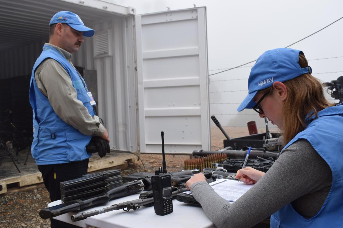 La Misión de la ONU recibió 8.994 armas de las antiguas FARC–EP; todas operativas. Según el número de acreditados, se estimó la tasa hombre-arma en 0.64, la más importante relación en procesos de paz en Colombia y una de las más importantes del mundo.