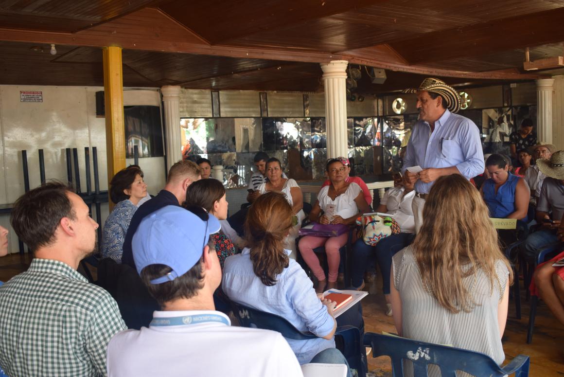 Luego, los visitantes se trasladaron al municipio de Vistahermosa, donde pudieron dialogar con líderes y lideresas de la comunidad del núcleo veredal de La Cooperativa. Presidentes de Juntas de Acción Comunal y representantes de organizaciones sociales hablaron sobre los principales beneficios, dificultades y retos en el contexto actual. La seguridad, la provisión de servicios de salud y educación, y el impulso al desarrollo rural integral fueron los temas en los que se centraron las intervenciones.