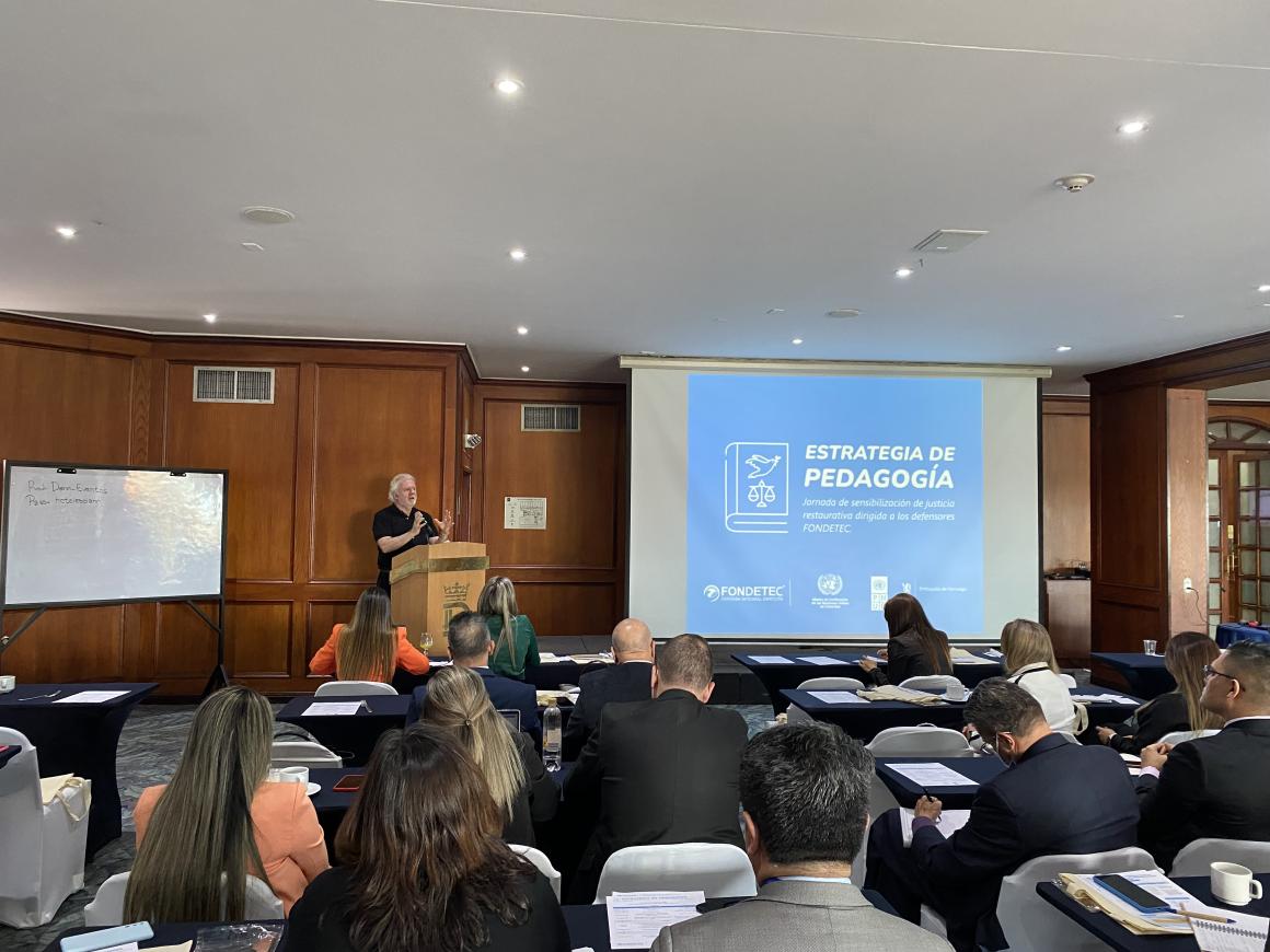 Como parte del compromiso conjunto con la implementación integral del Acuerdo Final de Paz de 2016, el Programa de las Naciones Unidas para el Desarrollo (PNUD) y la Misión de Verificación de las Naciones Unidas de Colombia, con el apoyo de la Embajada de Noruega, diseñaron e implementaron dos jornadas de sensibilización para fortalecer las capacidades alrededor de la justicia restaurativa de 54 defensores/as adscritos/as al Fondo de Defensa Técnica y Especializada de Miembros de la Fuerza Pública (FONDETEC), entidad que pertenece al Ministerio de Defensa.