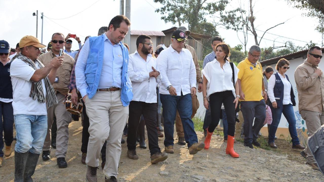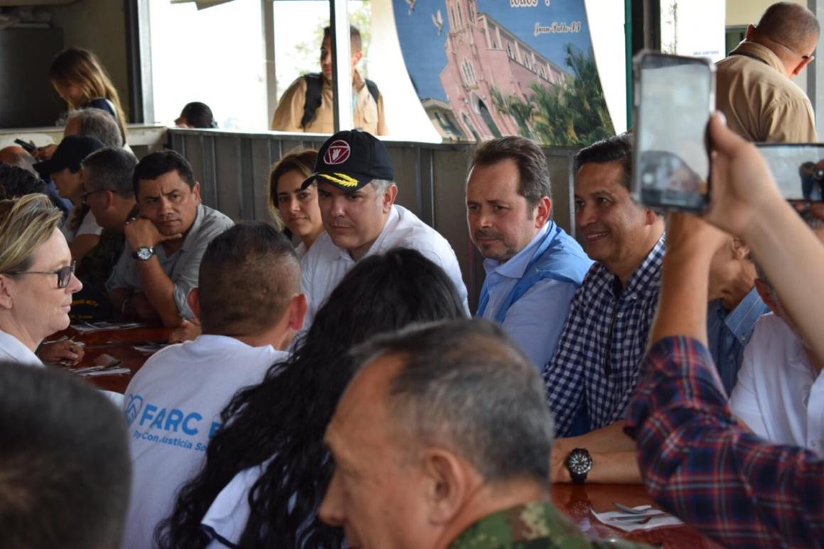 “Los ETCR están previstos para terminar en agosto, bajo la figura legal, pero lo que tenemos que hacer nosotros es asegurar que se conviertan en comunidades productivas”, dijo el presidente Duque a las personas en el Espacio Territorial.