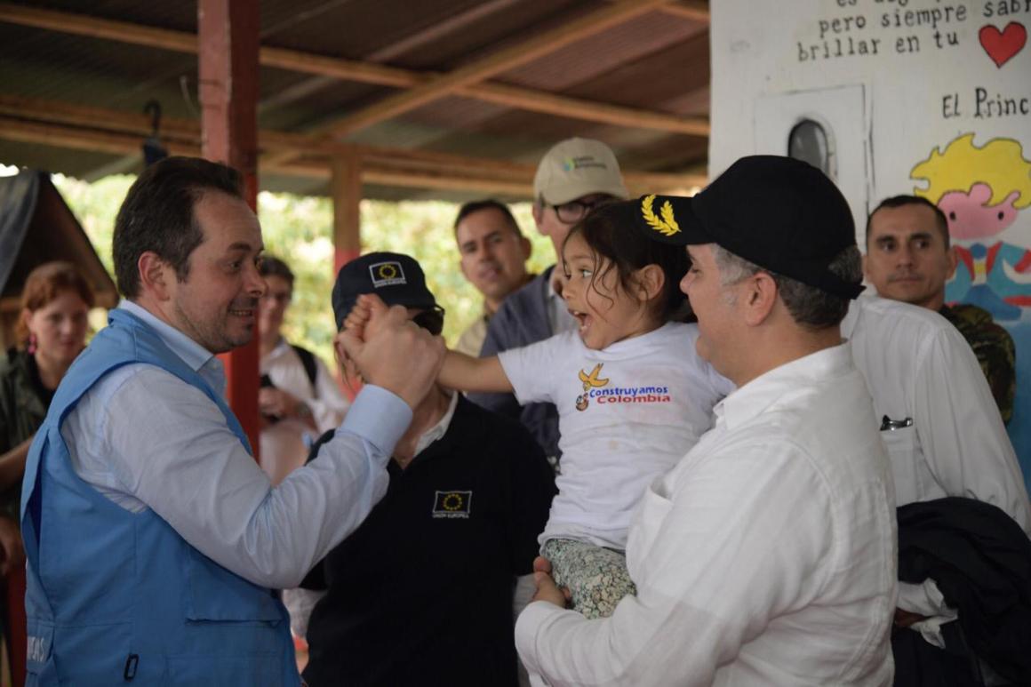 Icononzo, Tolima. Abril 4 de 2019. Con el fin de reducir la incertidumbre sobre el futuro de los Espacios Territoriales de Capacitación y Reincorporación (ETCR), el presidente de Colombia, Iván Duque visitó el Espacio de La Fila, en zona rural del municipio de Icononzo, en el departamento de Tolima, en compañía del Representante Especial del Secretario General y Jefe de la Misión de Verificación de la ONU en Colombia, Carlos Ruiz-Massieu.