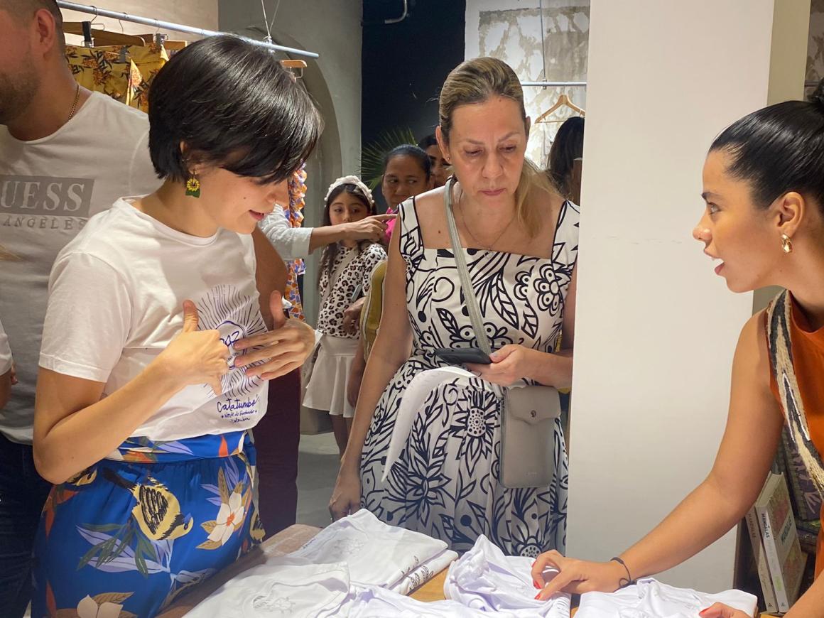 Esta semana, en Cúcuta, se celebró un hito importante para Puntadas por la Paz: el re- lanzamiento de su nueva colección. Este evento no solo marca la evolución de su negocio, sino que también simboliza un nuevo comienzo y la esperanza de un futuro mejor para las mujeres de Caño Indio y sus comunidades.