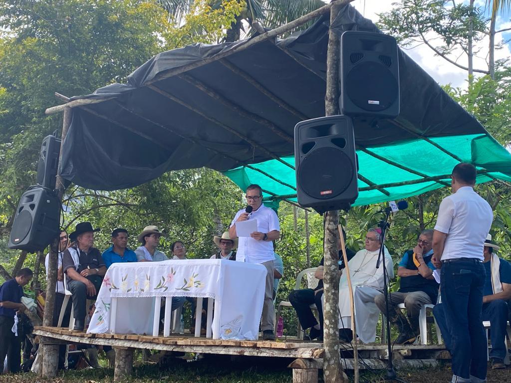 Por el gobierno nacional participó Víctor Alejandro Rhenals, delegado del Ministerio del Interior para temas religiosos: “entendemos el gesto de pedir perdón por los hechos ocurridos a un líder religioso, nuestro Estado colombiano no es indiferente a los sentimientos religiosos, por eso debemos velar por los Derechos Humanos y proteger a las personas y a sus creencias. Quiero decirle a la Iglesia Católica que cuenten con el Ministerio del Interior para garantizar el derecho fundamental de libertad religiosa y de cultos. Entendemos el liderazgo religioso como la construcción del tejido social”.