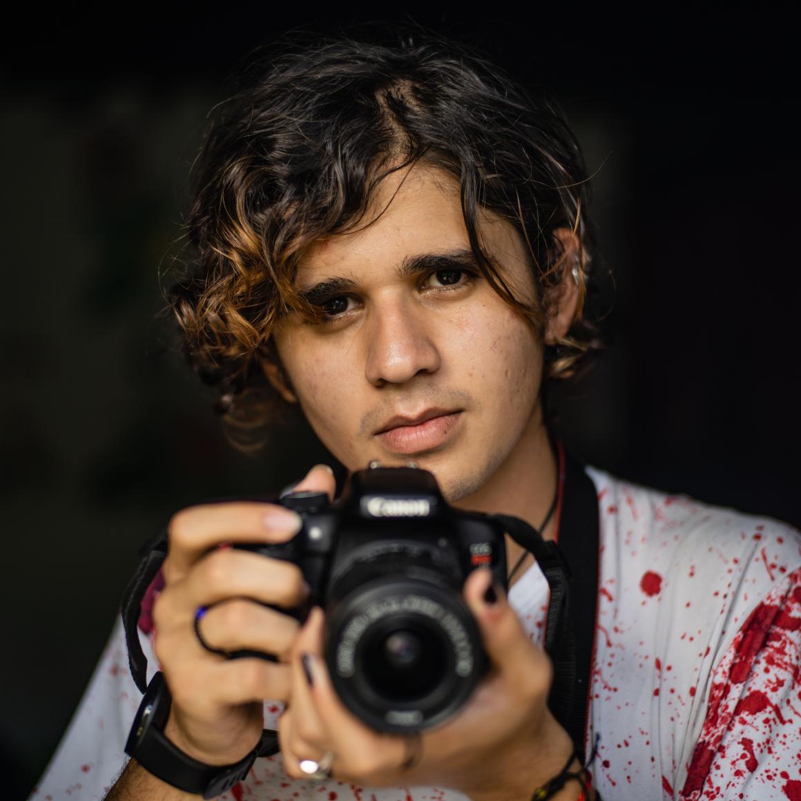 Chelo Camacho, 32 años, de Medellín, es un fotoperiodista transmasculino. Actualmente trabaja para medios internacionales, entre ellos la Agencia Reuters. También hace parte de la Red Popular Trans en Medellín.