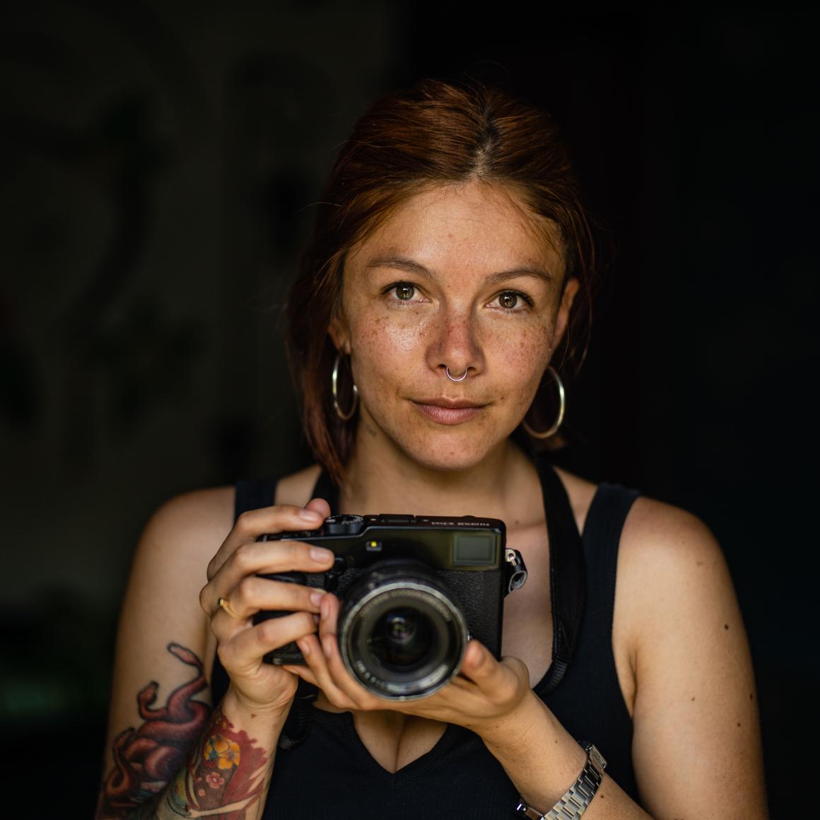 Sara Aliaga, La Paz, Bolivia, es comunicadora social y fotoperiodista. Narradora Visual Aymara, ganadora del Photo Book Award con PhotoEvidence y World Press Photo junto a COVIDLATAM, 2021, Con publicaciones en The New York Times, The Guardian, La Barra Espaciadora, El País, entre otros. Estuvo a cargo de impartir el taller de fotografía en La Plancha, Anorí.