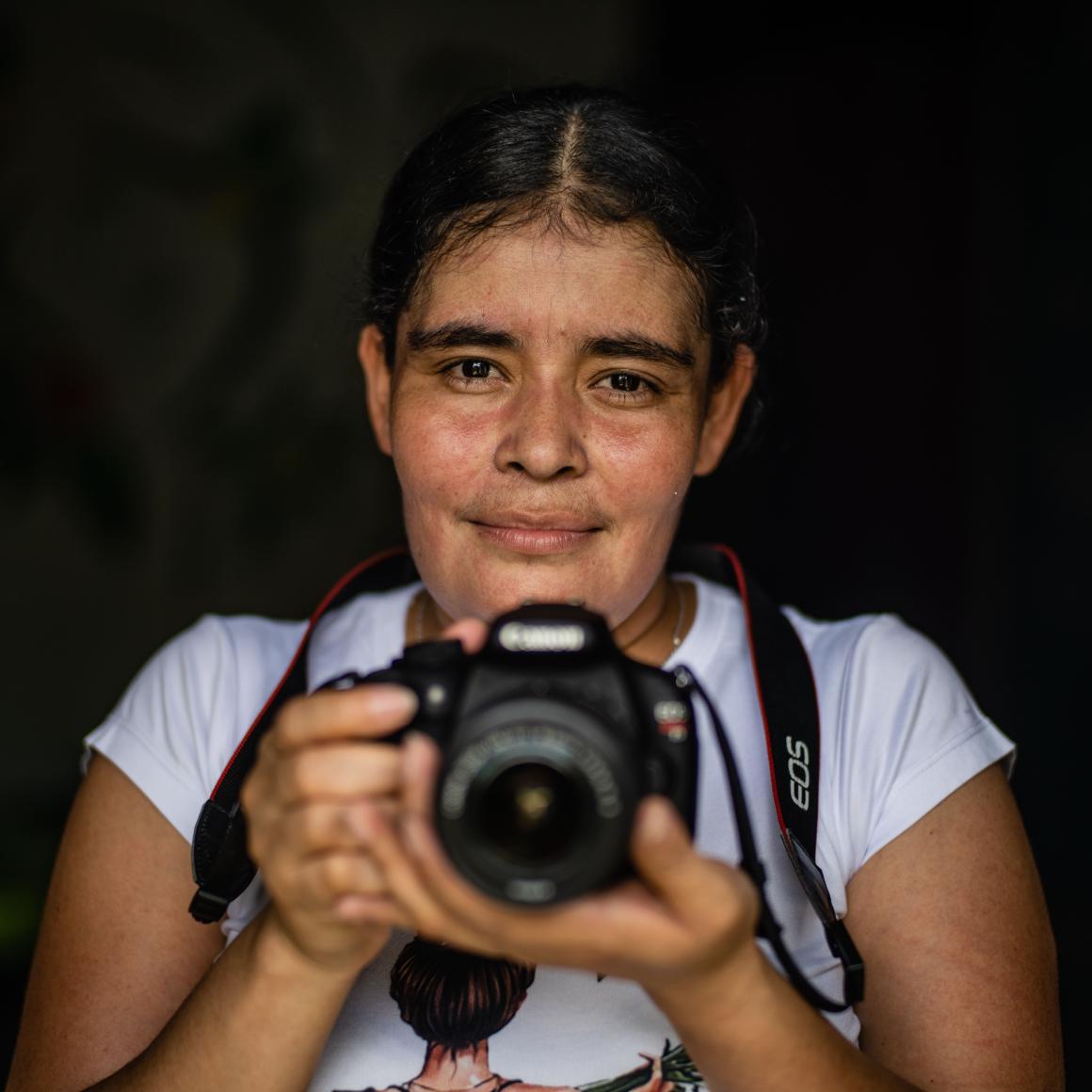 “Desde chiquita veía mucho maltrato hacia la mujer y muchas de nosotras callamos todos esos maltratos. La fotografía me buscó para que pudiera mostrar esa situación. (…) La mujer no era reconocida dentro del núcleo comunitario. La mujer siempre era la que no sabía hablar. La mujer era la que la que sólo servía para lavar y cuidar los hijos. Estamos mirando que hay mujeres lideresas en diferentes grupos de trabajo. He trabajado desde hace tres años con grupos de comunitarios, entonces se ve ya la participación de la mujer en asociaciones y posiciones de mayor liderazgo”.
