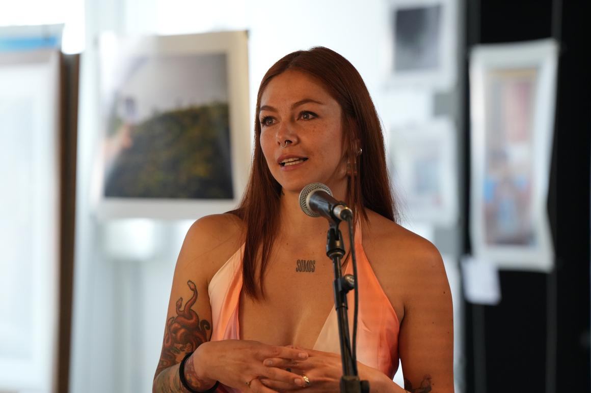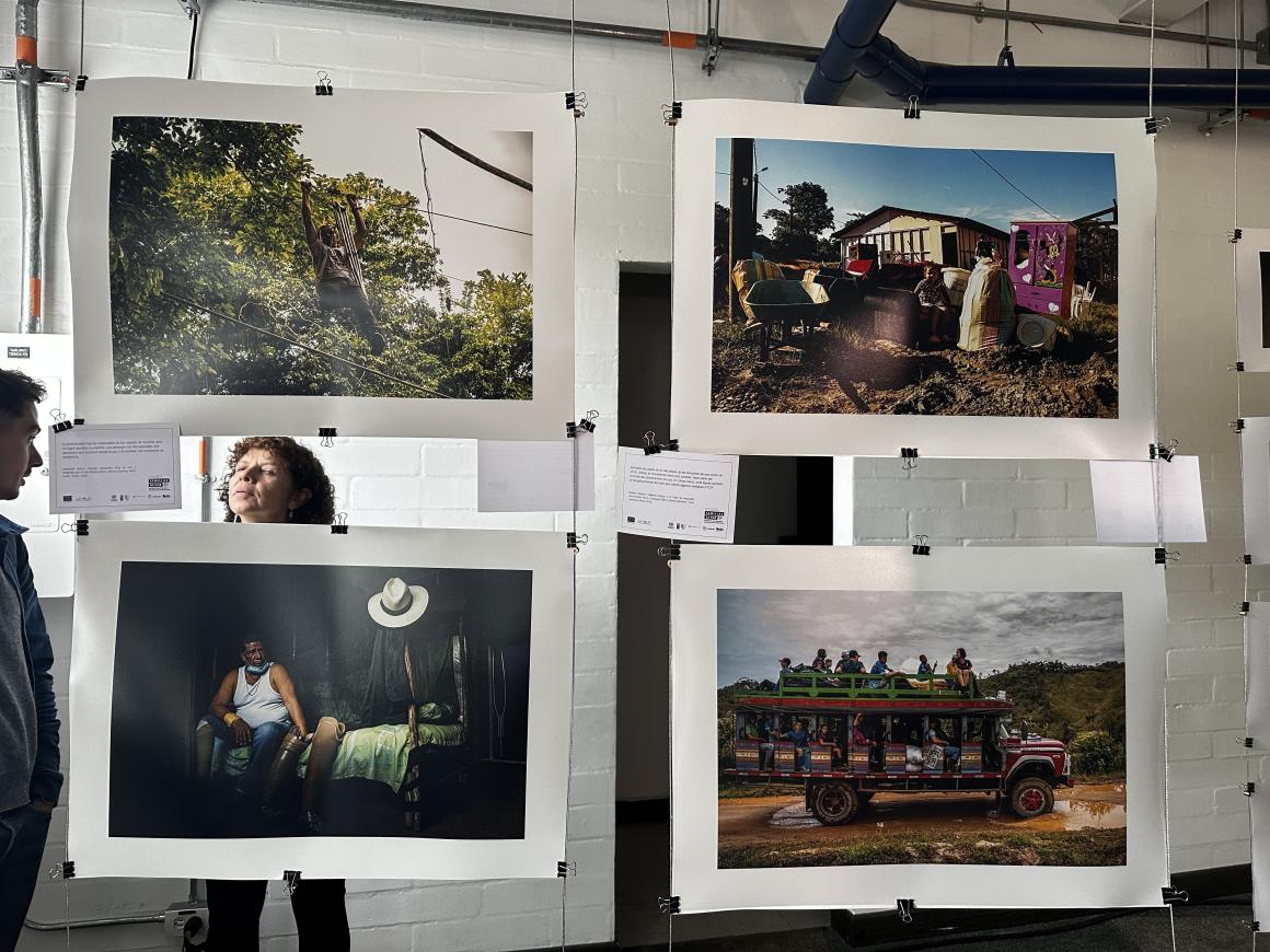 Por parte del Colectivo Miradas, las encargadas de las presentaciones fueron la fotógrafa comunitaria y líder de Miradas Gina Parra y la firmante de paz Carmen Castillo, autoras de algunas de las 70 fotografías de esta muestra, que es el resultado de procesos pedagógicos y artísticos del Colectivo Miradas en territorios como Anorí, Yondó, Mutatá y Carrizal, Antioquia; Charras, Guaviare; Icononzo, Tolima; La Carmelita, Putumayo; La Julia y Villavicencio, en Meta; Los Palmitos, Sucre; Miravalle, Caquetá; Neiva, Huila; Tierra Grata, Cesar; y Tumaco, en Nariño.