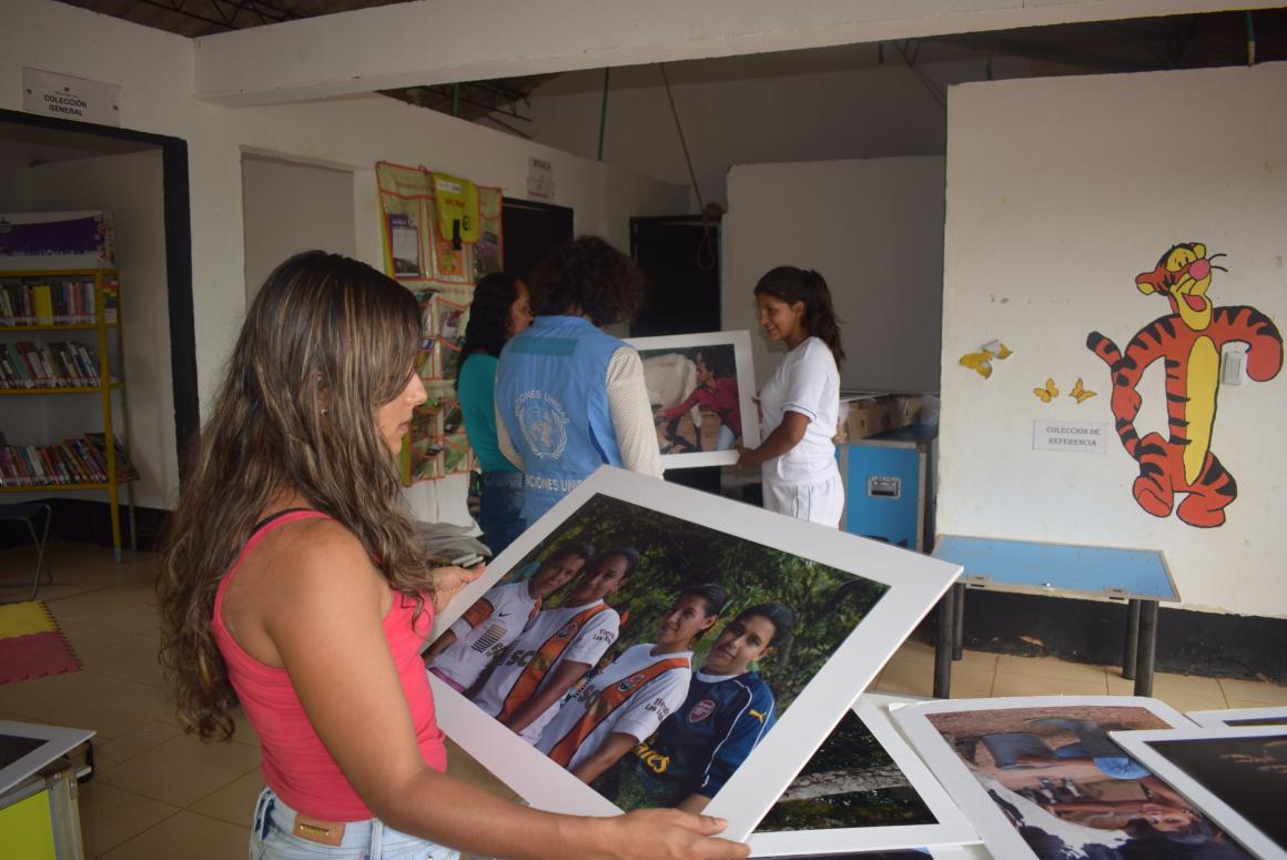 Ahora, después de la capacitación, las paredes de la biblioteca están destinadas a mostrar a sus visitantes el resultado de su trabajo, la exposición “Mujeres Rurales”, que antes estuvo expuesta en Piñalito y en el casco urbano de Vistahermosa.