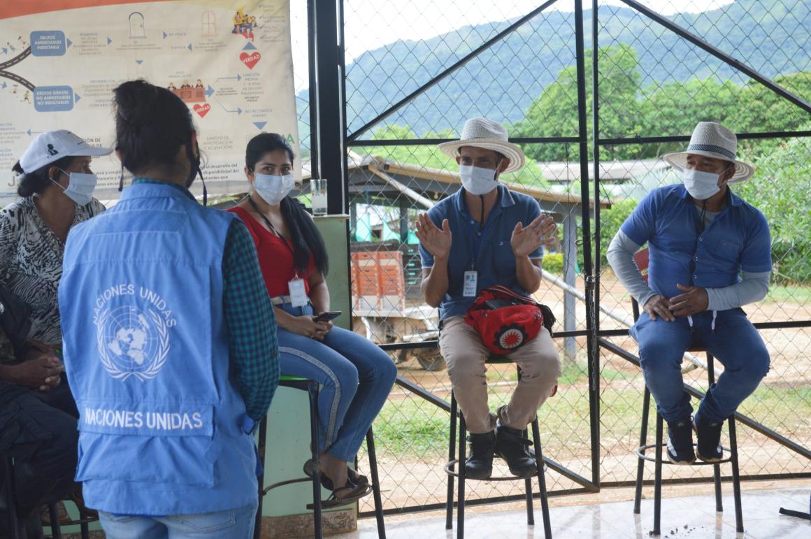 Cuatro personas en proceso de reincorporación del AETCR Agua Bonita, en Caquetá, emprendieron un viaje hacia Puerto Guzmán, en Putumayo, para conocer las iniciativas productivas y dialogar sobre igualdad de género con los habitantes de la Granja de Paz, un asentamiento de personas en proceso de reincorporación en el que se desarrollan diversas iniciativas productivas. A su vez, seis personas de la Granja de Paz viajaron a La Montañita para conocer Agua Bonita, sus iniciativas productivas y sus esfuerzos en materia de igualdad de género. Este intercambio fue apoyado por fondos del Departamento de Asuntos Políticos de Naciones Unidas a través de la Misión de Verificación de la ONU en Colombia, así como del equipo de género de la Misión de Verificación y el Consejo Nacional de Reincorporación.