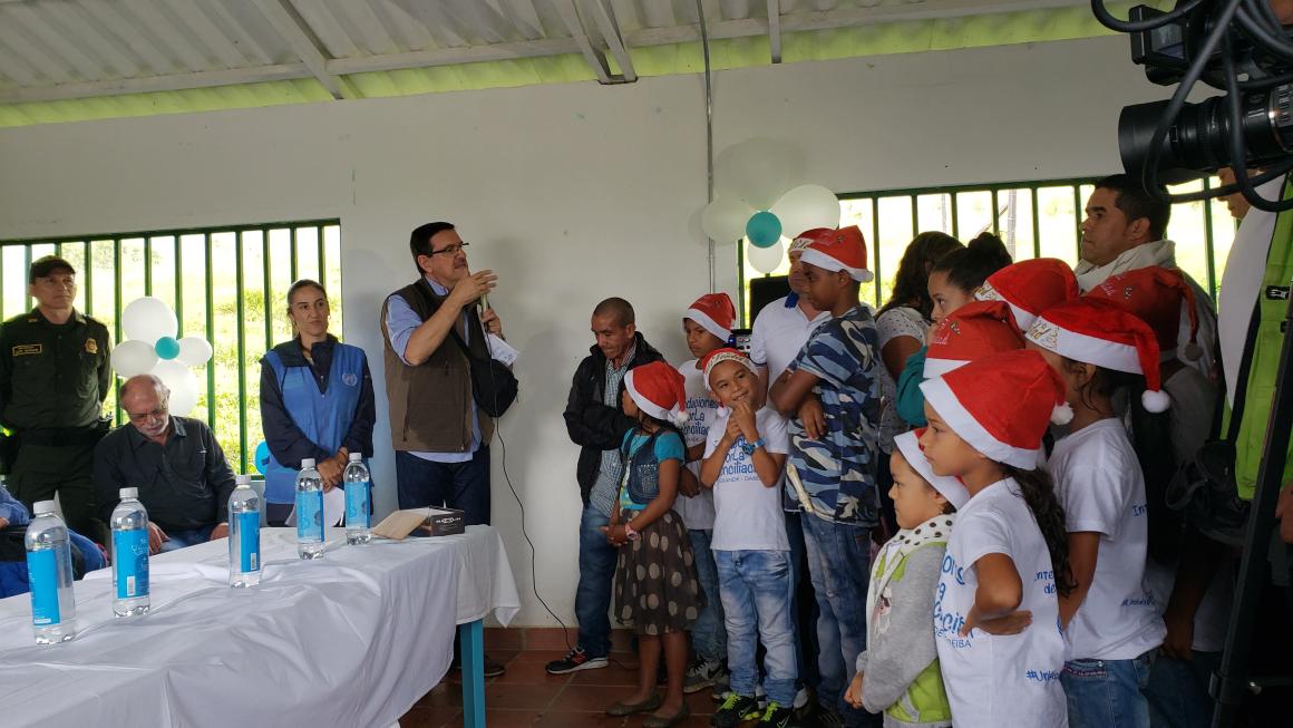 Con el propósito de dar inicio a esta temporada navideña, un grupo fundaciones empresariales, corporaciones y organizaciones del sector privado que conforman la alianza de Fundaciones por la Reconciliación, se unieron para realizar una jornada de integración en la comunidad de Llano Grande, Dabeiba, donde se avanza en un modelo de reconciliación desde las aulas en las que hoy estudian los hijos de víctimas del conflicto, de excombatientes y de Fuerza Pública.