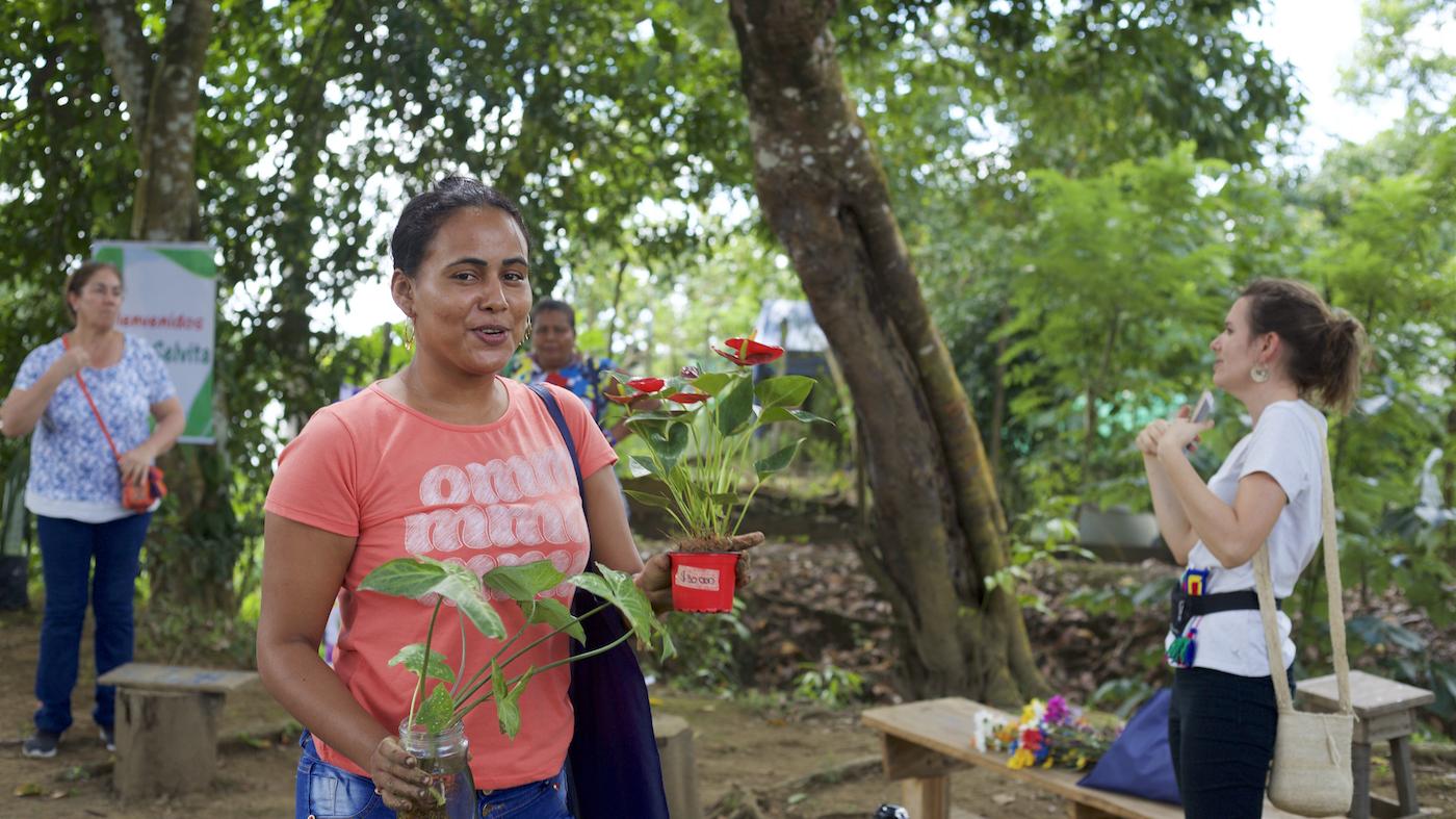 María Muñoz, quien dejó las armas gracias al Acuerdo de Paz entre el Gobierno colombiano y las FARC-EP, impulsó un vivero comunitario en el antiguo Espacio Territorial de Capacitación y Reincorporación (ETCR) en el Carmen del Darién, Chocó. El objetivo de la iniciativa es brindarle a cerca de 45 niños y niñas que habitan en el antiguo ETCR de Brisas un lugar donde puedan realizar actividades de esparcimiento y que, al mismo tiempo, sirva como centro de enseñanza para la agroecología, sobre todo, dice Muñoz “para que grandes y chicos comprendan el valor de la naturaleza, de la tierra, de los árboles y las plantas que producen los alimentos que consumimos y su importancia en el sostenimiento del medio ambiente”.