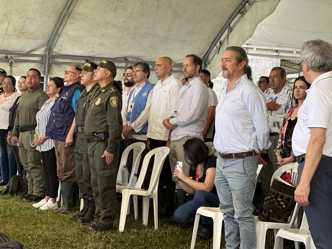 La Misión de Verificación de las Naciones Unidas en Colombia celebró la entrega oficial del predio junto a las Embajadas de Noruega y Cuba en Colombia. “Este es un momento muy importante de cumplimiento del Acuerdo de Paz en su aspecto integral, no solamente se cumple con los excombatientes para la reincorporación social y económica, sino que se está dando una señal de avance en la reforma rural y en la seguridad integral para las comunidades y los excombatientes”, resaltó Alessandro Preti, director de reincorporación de la Misión.