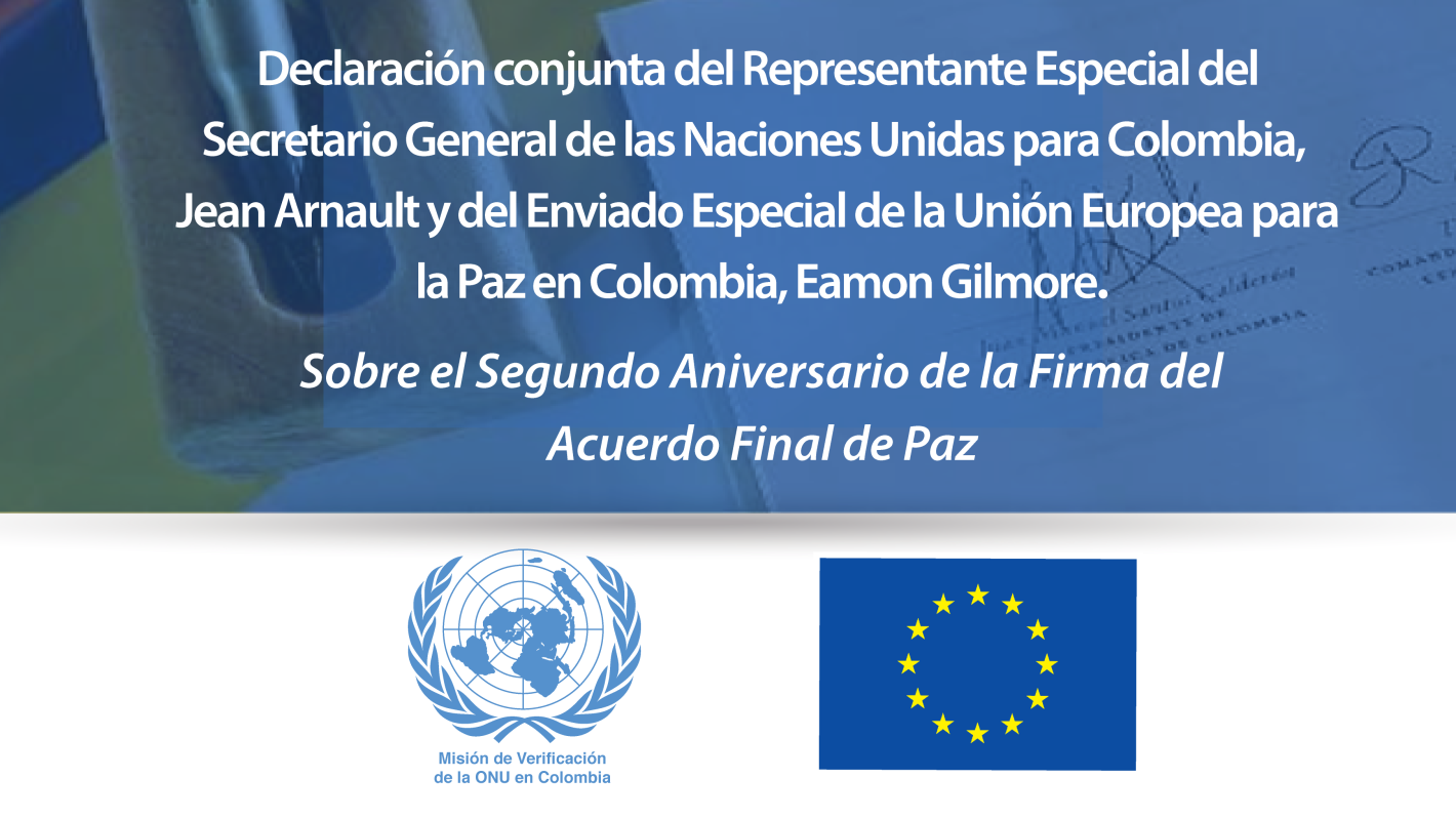 Declaración conjunta del Representante Especial del Secretario General de la ONU para Colombia, Jean Arnault y del Enviado Especial de la Unión Europea para la Paz en Colombia, Eamon Gilmore, sobre el Segundo Aniversario de la Firma del Acuerdo de Paz.