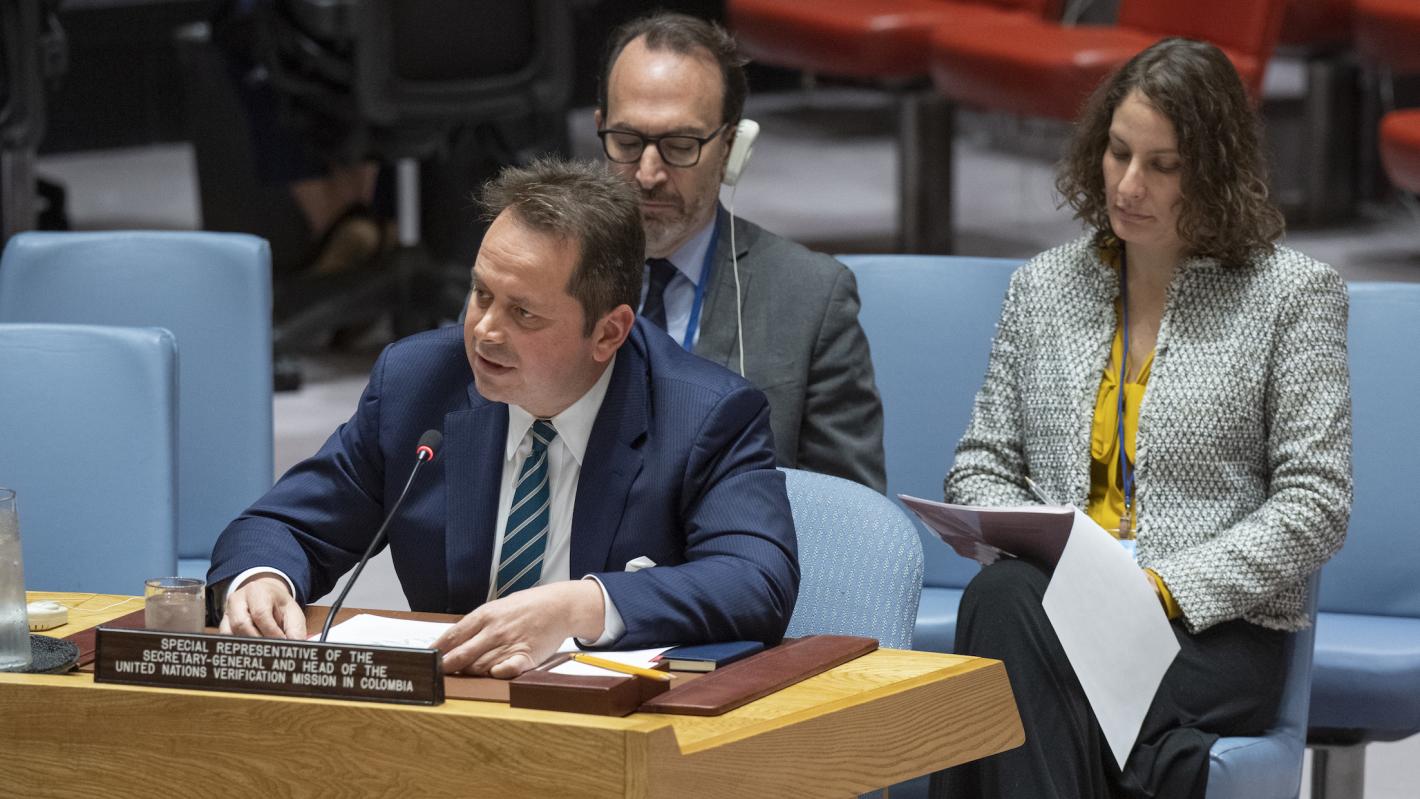 Gracias por la oportunidad de presentar el último informe del Secretario General sobre Colombia. Doy bienvenida a la participación en la reunión de hoy del Ministro de Relaciones Exteriores Carlos Holmes Trujillo y del Consejero Presidencial para la Estabilización y Consolidación, Emilio Archila, y les agradezco su apoyo a la labor de la Misión de Verificación de las Naciones Unidas en Colombia.