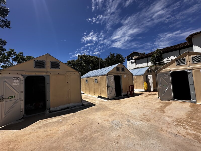 Sitios temporales que funcionan como vivienda para los firmantes de paz en predio El Viento, en Yalí, mientras se construyen las definitivas.